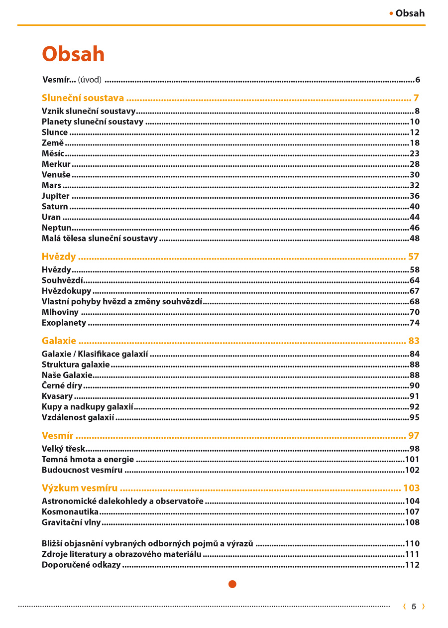 V knize postupně probereme vesmír od nejbližšího okolí Země po nejvzdálenější části vesmíru. Nechybí ani kapitoly o vzniku vesmíru, gravitačních vlnách nebo největších astronomických dalekohledech. Důraz je kladen na současná horká témata výzkumu vesmíru a na zajímavosti.